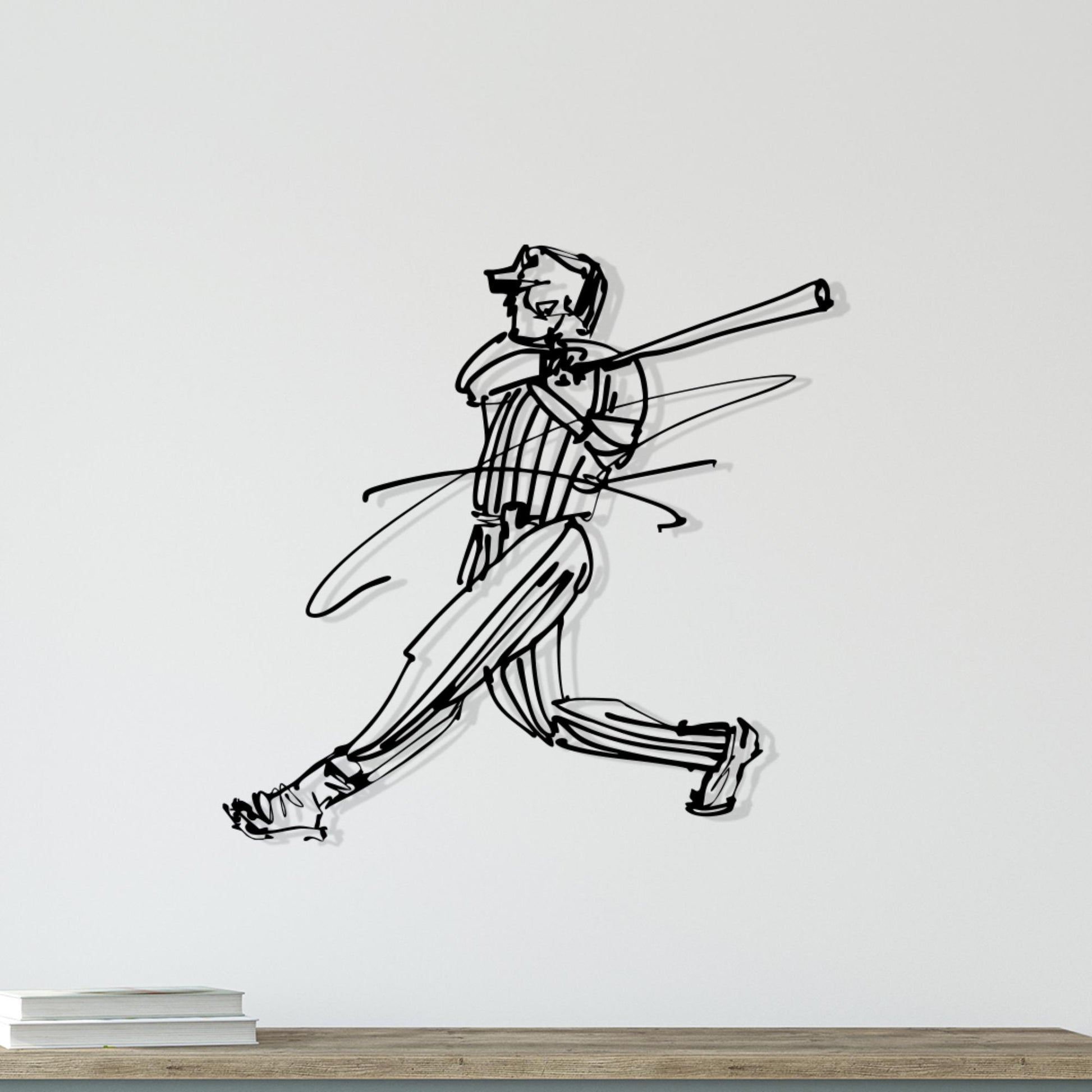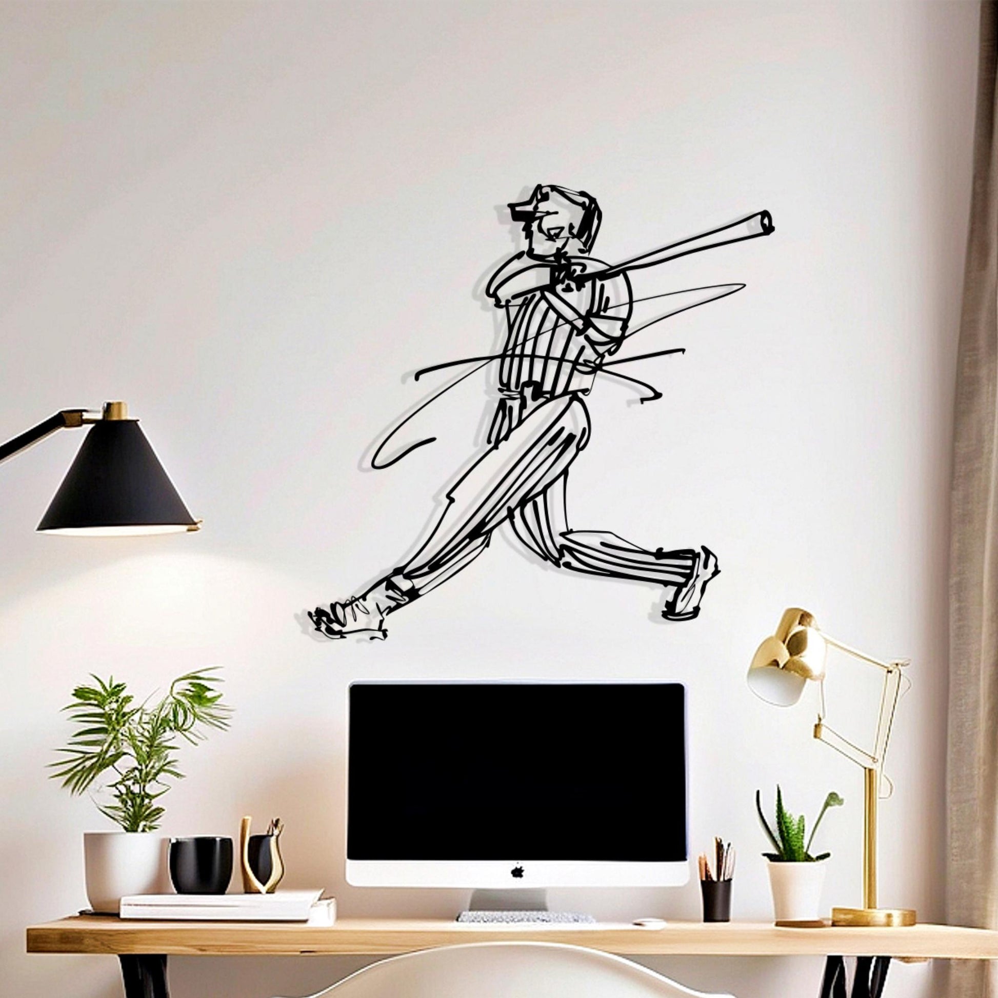 Baseball Player Metal Wall Art: Sports Room Decor, Athlete Gift
