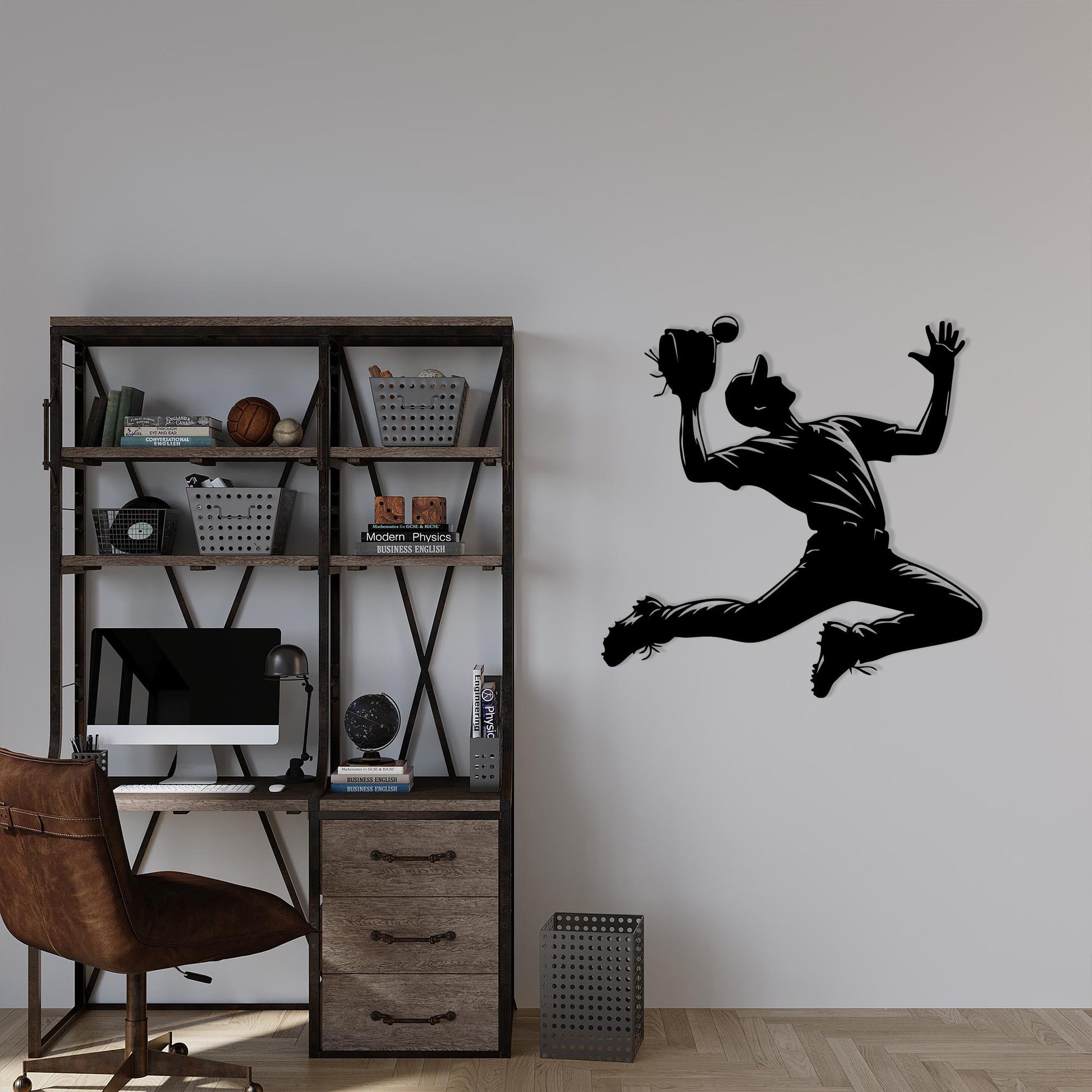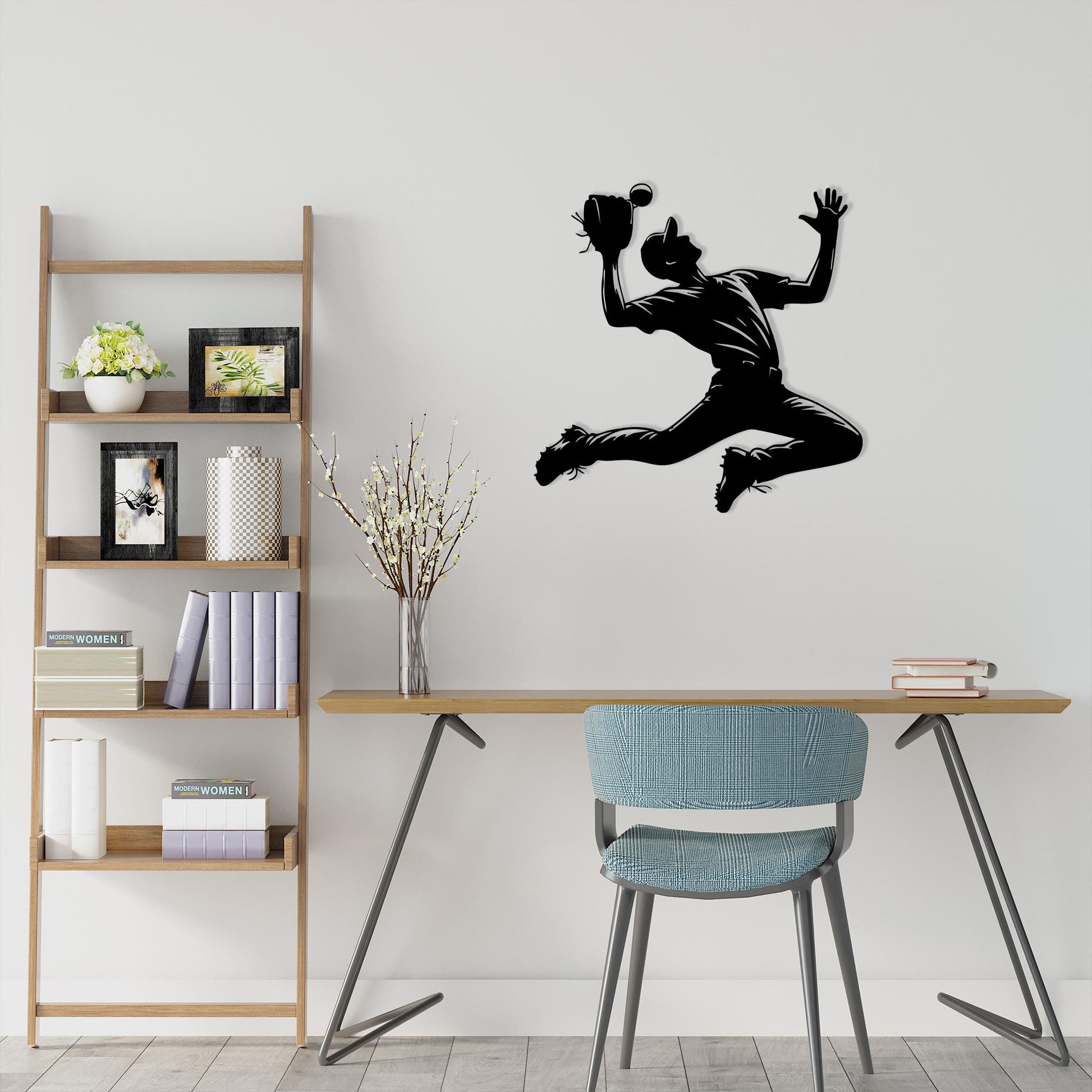 Celebrate your love for baseball with this striking black metal wall art featuring a dynamic baseball player in action. This bold silhouette adds an energetic and sporty touch to any space perfect for sports lovers, athletes, and baseball enthusiasts!
