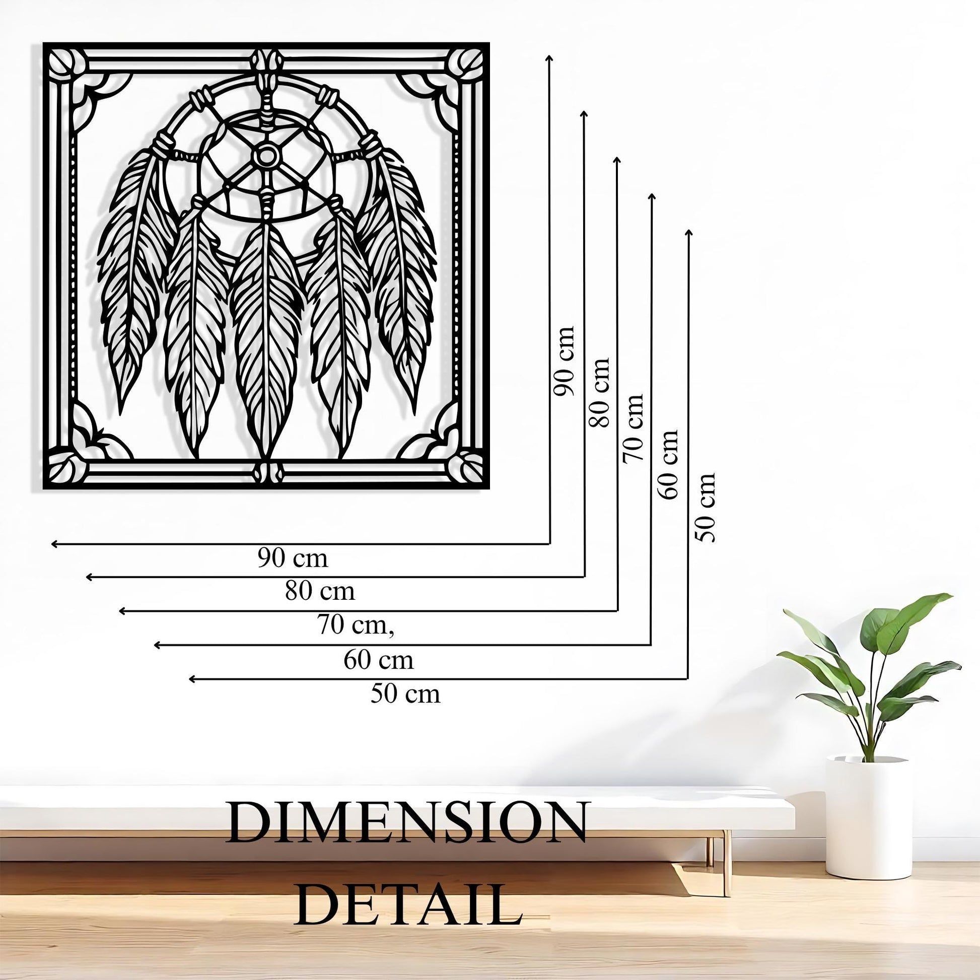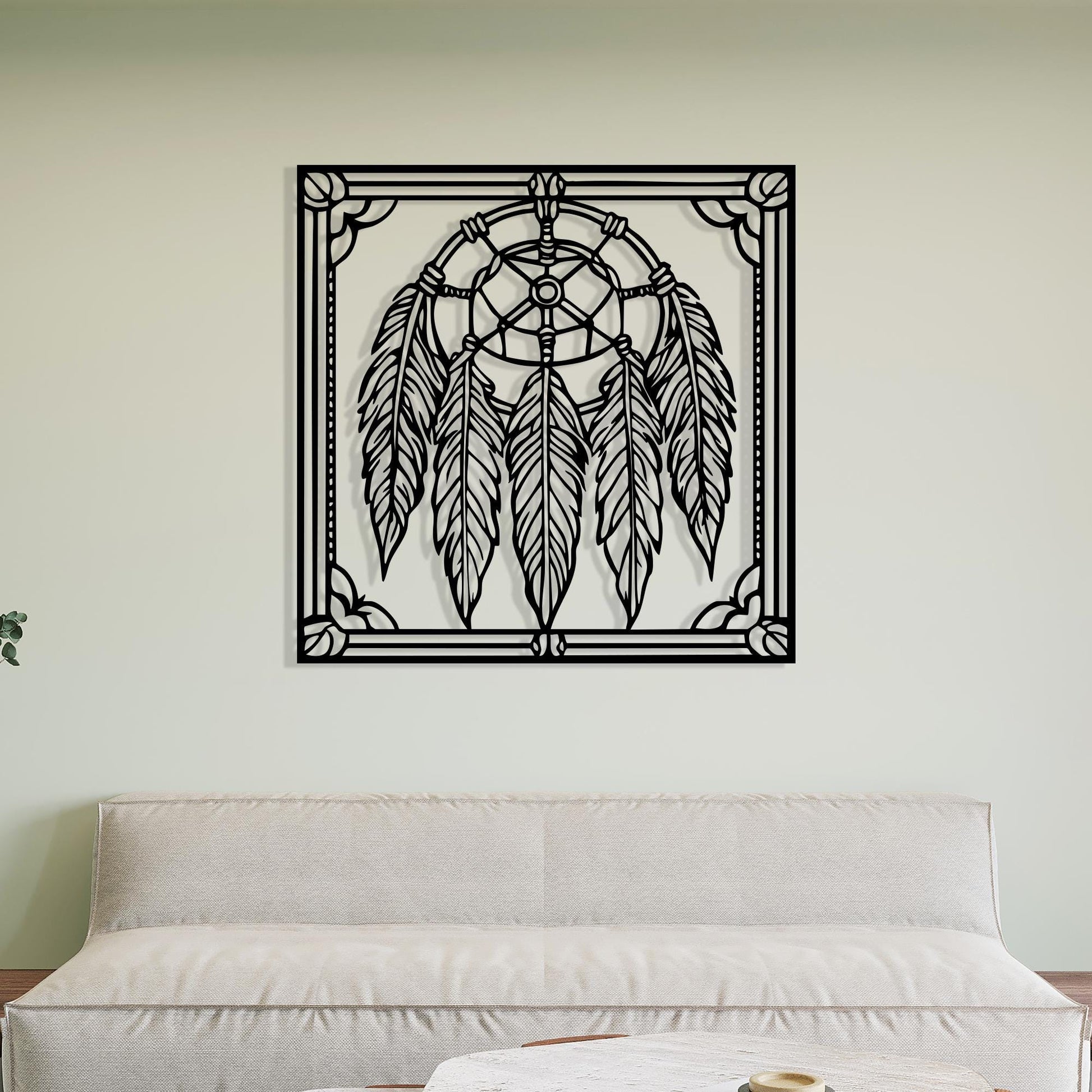 Bring a spiritual and bohemian vibe into your space with this stunning metal dreamcatcher wall art. Crafted with intricate feather details and framed for added elegance, this piece is perfect for those who seek both artistic expression and symbolic décor.