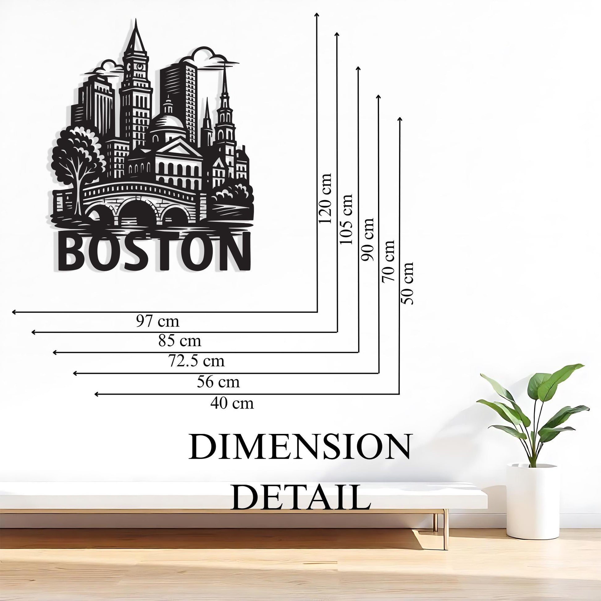 Bold “BOSTON” lettering adds personality and city pride to your wall