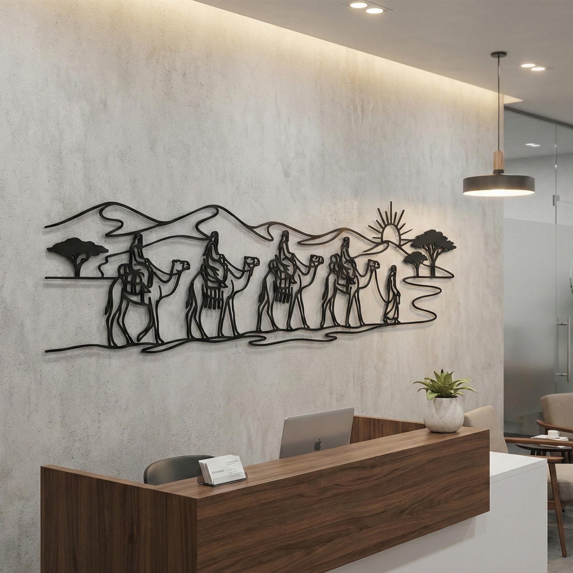 Camel Caravan Metal Wall Art | Desert Safari Decor | African Landscape Sign | Bedouin Gift