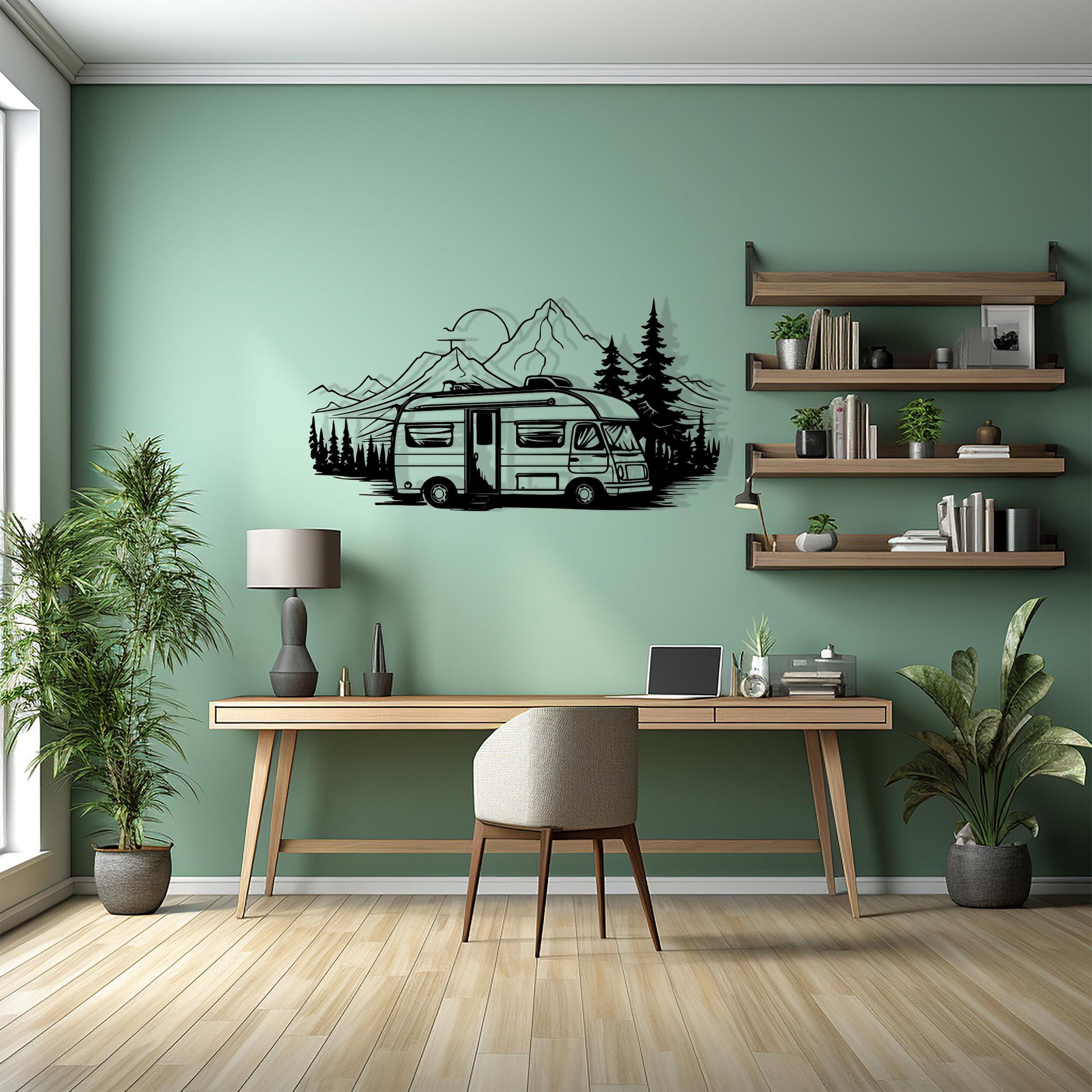 Camper Van Metal Wall Art: Mountain Forest RV Decor